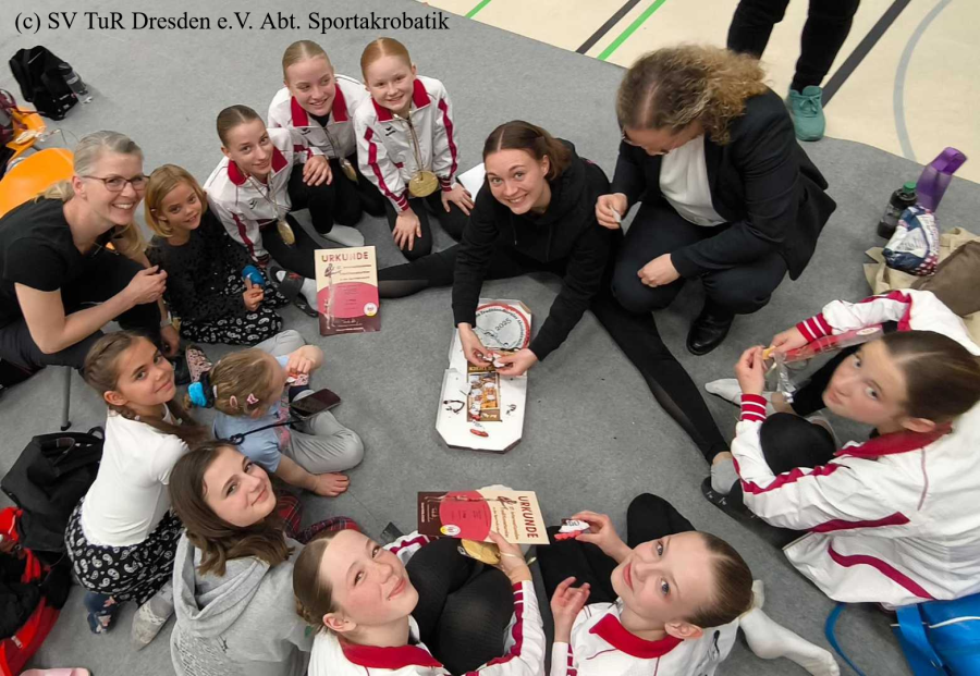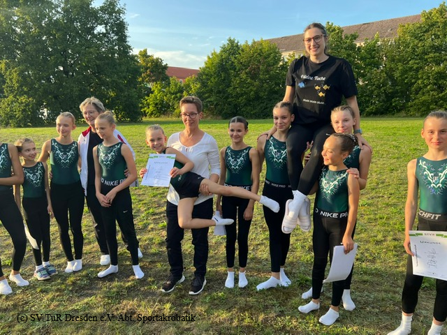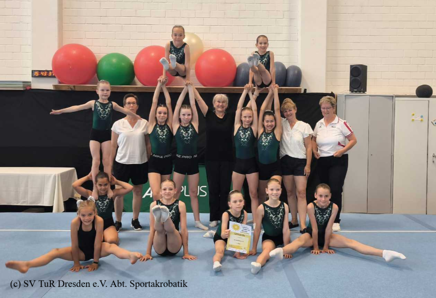 In den Gruppen turnen größere/ ältere Kinder als Unterpartner mit kleineren und meist jüngeren Kindern als Oberpartner zusammen. Dadurch entsteht ein ganz besonderes Zusammengehörigkeitsgefühl. Sachsens Sportakrobaten zählen zu der Spitze in Deutschland.